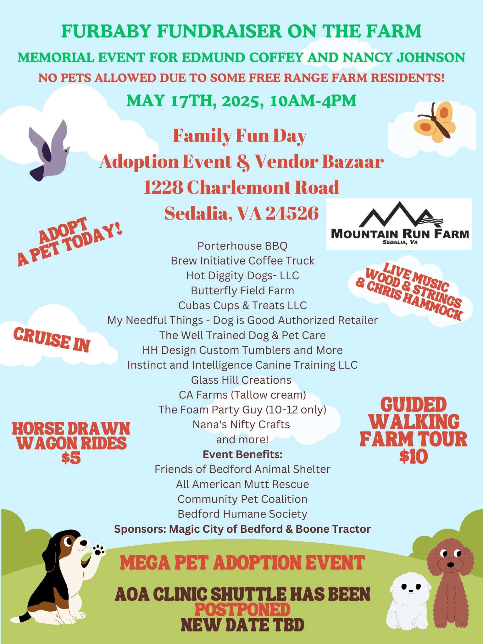 This special memorial event honors the legacy of Edmund Coffey and Nancy Johnson, whose shared dream of a spay/neuter/wellness clinic for the Bedford Animal Shelter is finally coming to life. Thanks to a partnership between Assistant Bedford County Administrator DW Lawhorne and the newly forming nonprofit Community Pet Coalition, their vision is becoming reality.