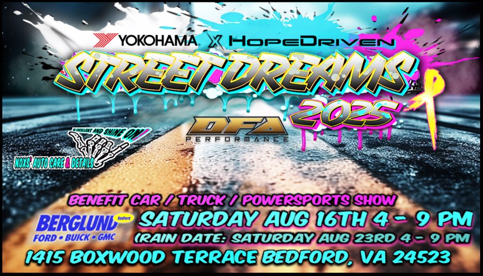 Be sure to check the Facebook page for more event details as the event gets closer – HopeDriven’s Street Dreams 2025 – Benefit Car/Truck/Powersports Show
