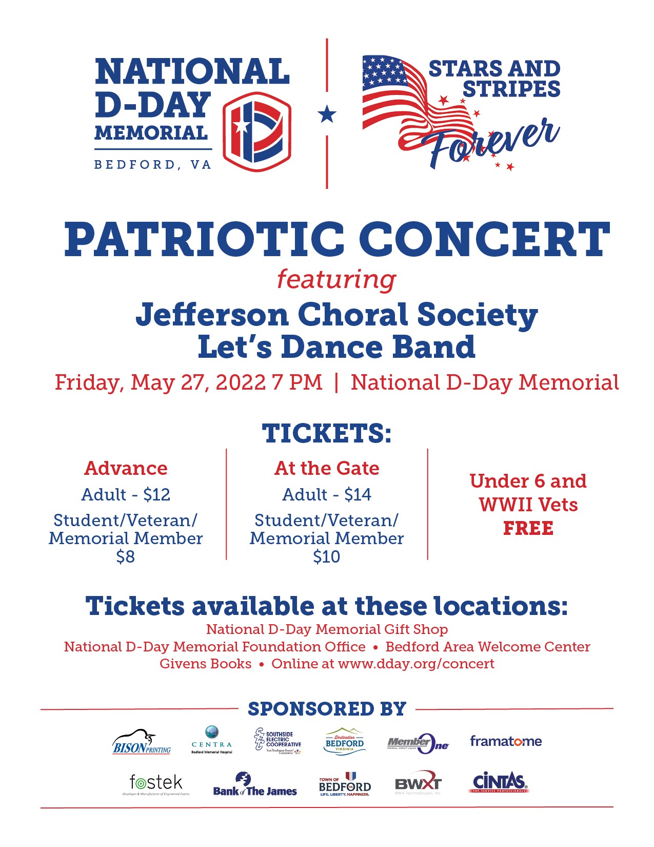 Kick off your Memorial Day weekend with the Jefferson Choral Society performing beloved patriotic tunes. The Let’s Dance Band opens with big band sounds of the 1940s.