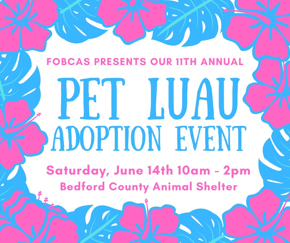 Friends of Bedford County Animal Shelter will be holding the 11th annual Pet Luau event at the Bedford County Animal Shelter from 10 AM to 2 PM on June 14th, 2025.