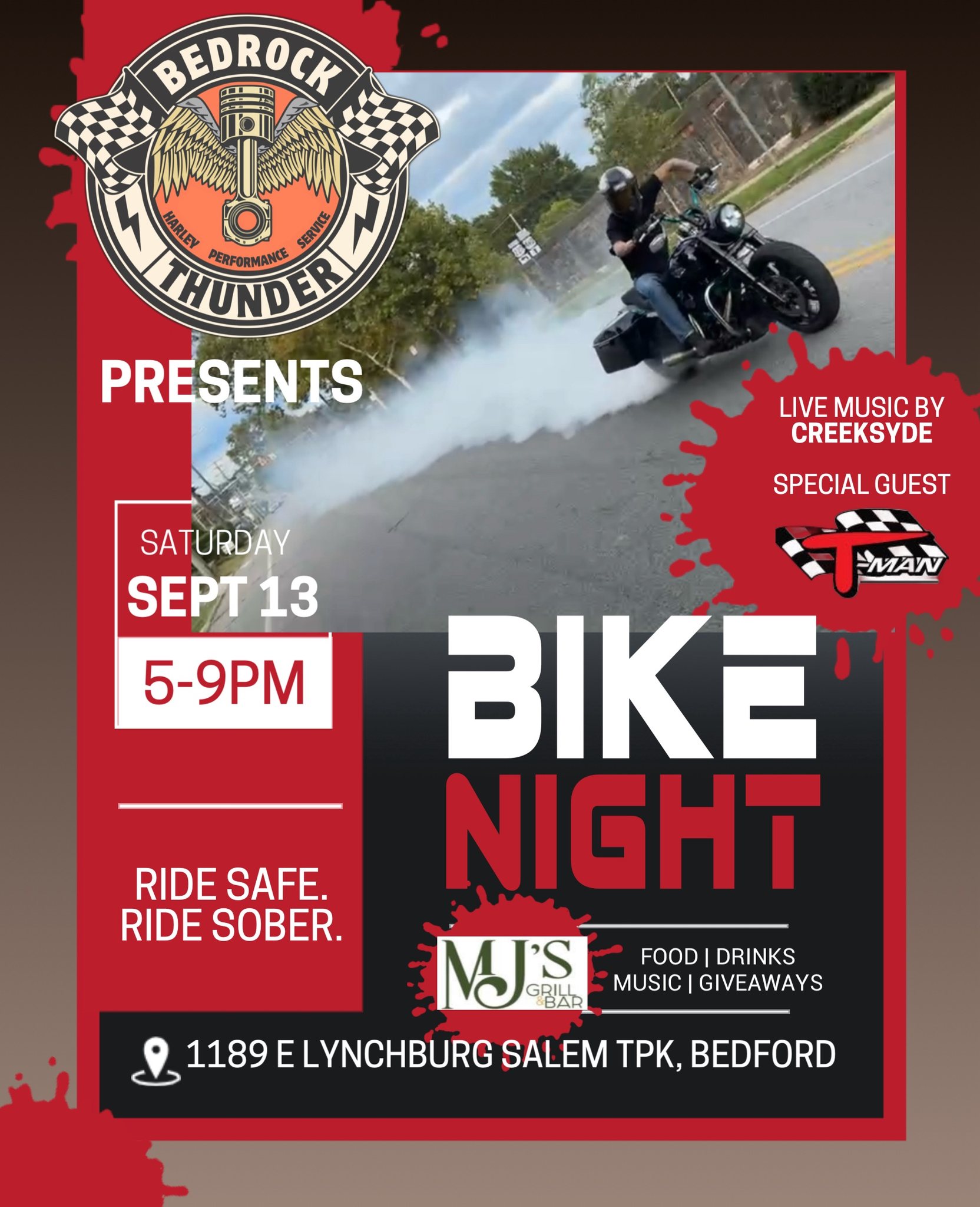 Saturday, September 13 (5-9PM) at MJ’s Grill & Bar in Bedford, VA! There will be an outside bar on the patio and wait staff dedicated to that area! Live music...