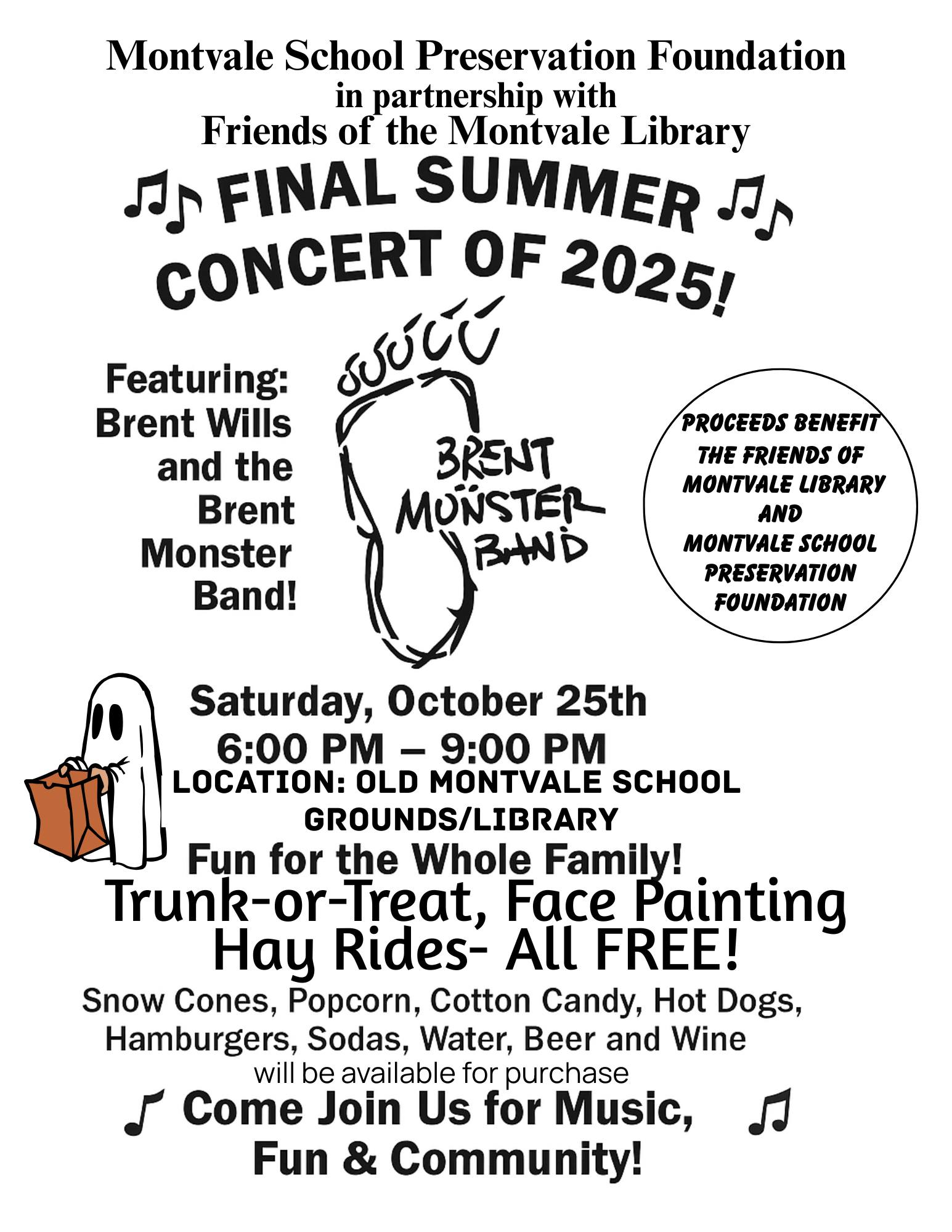 The Montvale School Preservation Foundation, in partnership with the Friends of the Montvale Library, invites you to the Final Summer Concert of 2025 featuring Brent Wills and the Brent Monster...