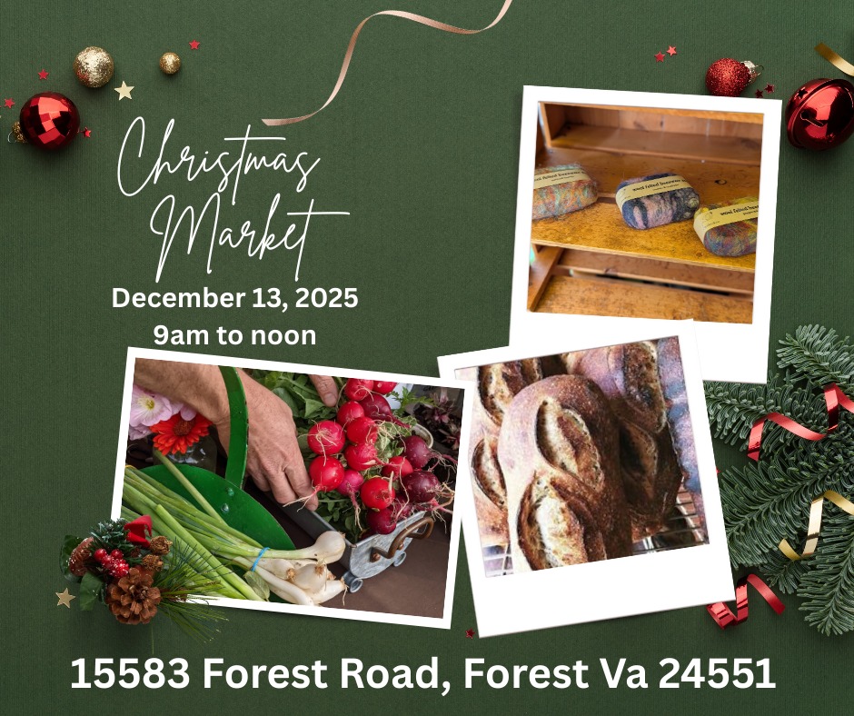 Come celebrate the holidays with the Forest Farmers Market! Fresh produce, meats, baked goods, artisans and more. Located behind the Forest Library.