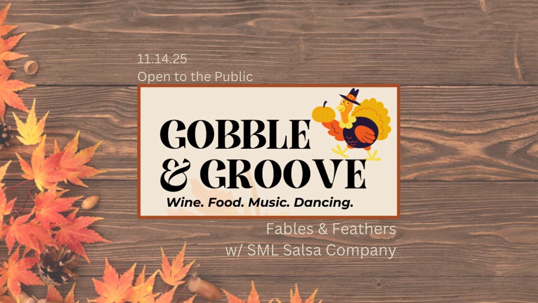 Fables & Feathers Winery 2117 Bruno Dr., Goodview, VAReady to gobble up some delicious wine and food, then groove to lively beats? We’ve got the perfect event for you! For just a $10 cover at the door (cash or Venmo accepted), you can enjoy an evening filled with dancing, great vibes, and tasty treats. SML Salsa students currently enrolled in November or December...