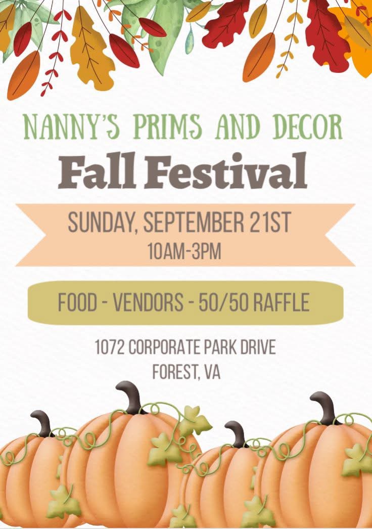 Nannys Prims & Decor 1072 corporate park drive, Foresy, VA, United States5th Annual Christmas Open House Friday & Saturday, November 7th & 8th It’s the most wonderful time of the year at Nanny’s Prims & Decor! Two festive days filled with holiday magic, new arrivals, exclusive prizes, and all the cozy feels. Be one of the first 20 customers each day to receive a FREE tote...
